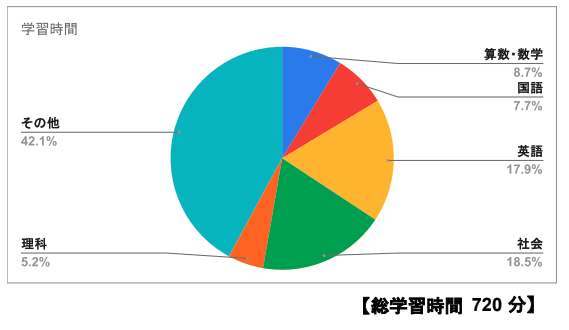 どの教科にどれだけ時間を使っているかをグラフで確認できます。