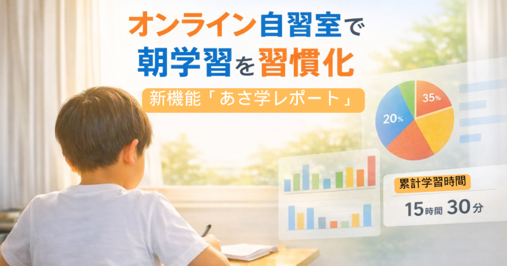 オンライン自習室「あさ学プラス」では、毎朝30分の朝学習を通じて、朝の学習習慣づくりをサポートしています。
